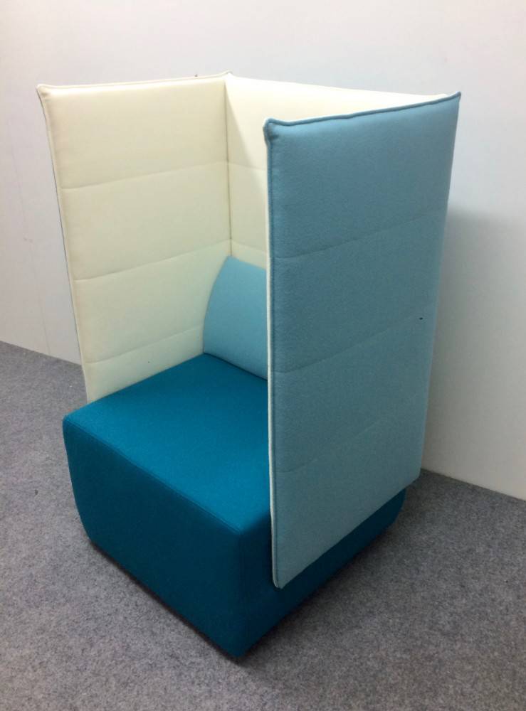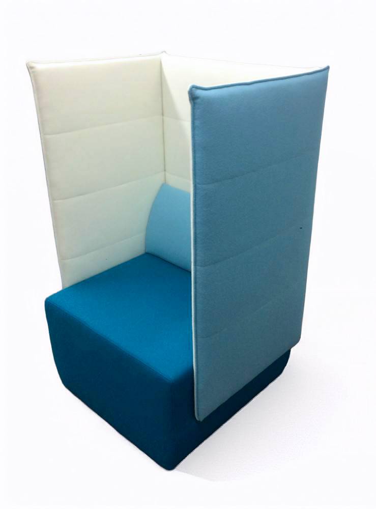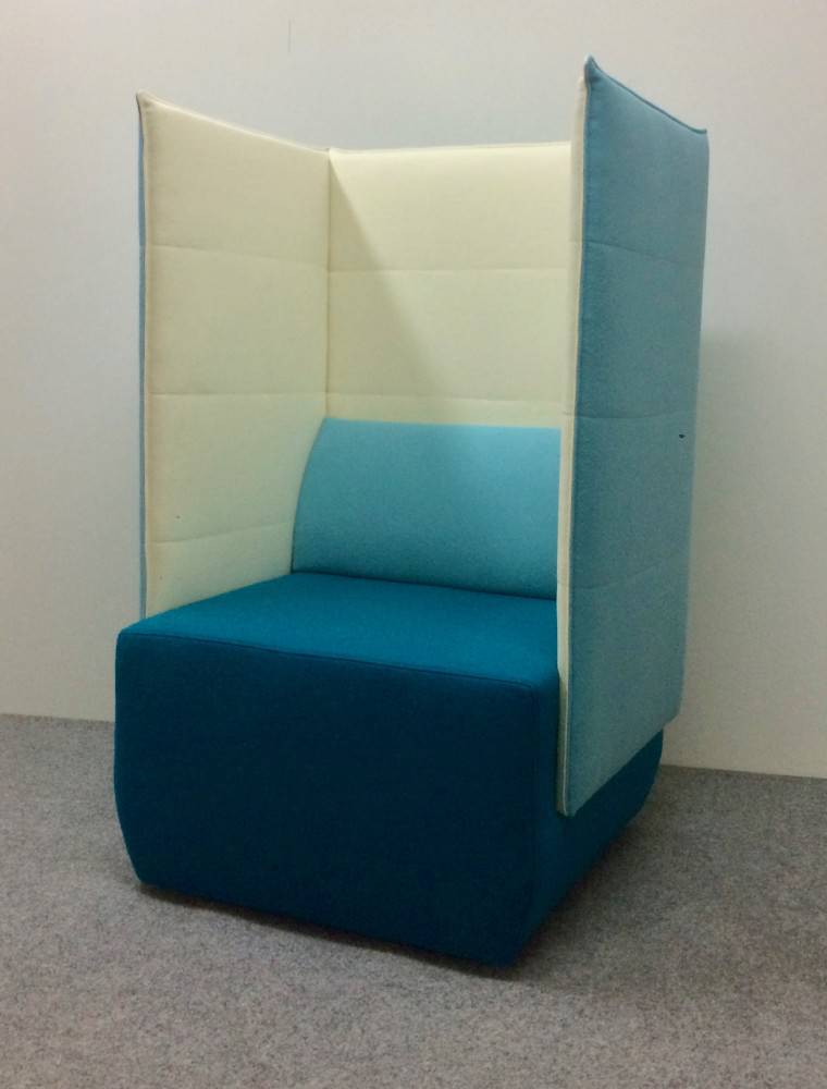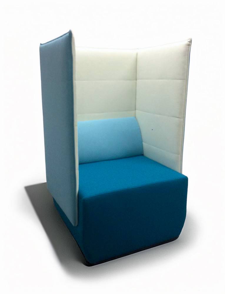 BOX BLOCK 1 korkeaselkäinen nojatuoli on täydellinen mm. rauhalliseen puhelinkeskusteluun tai hiljaiseen työskentelyhetkeen kannettavalla. BOX BLOCK 1 nojatuolissa on muoviset liukunastat alla ja verhoilu on valittavissa joko yksi- tai kaksivärisenä. Selkänojatyyny on irrotettava ja verhoiltavissa erikseen. Selkänojatyynyssä on lisäksi vetoketju, jotta tyynyn päällinen on pestävissä. Verhoiluvaihtoehtoja on useita. Esim. Wooly / Wooly Plus villaverhoilu on kestävä ja helppohoitoinen ja värivaihtoehtoja on monta.