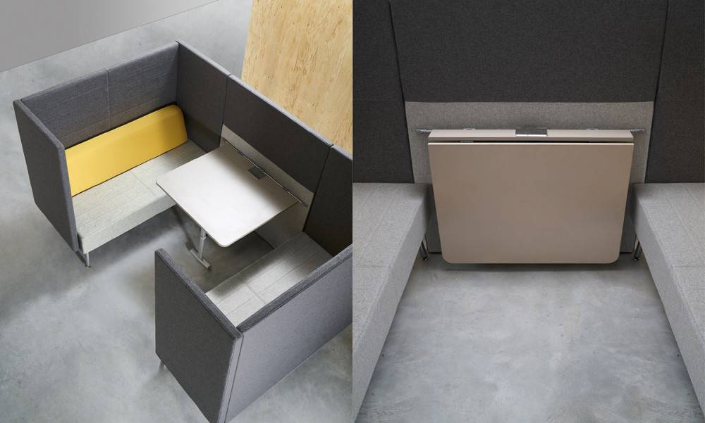 - Kahden sohvan väliin pöytä, jonka voi taittaa alas (sis. 1 suko, 1 RJ45, 1 USB)