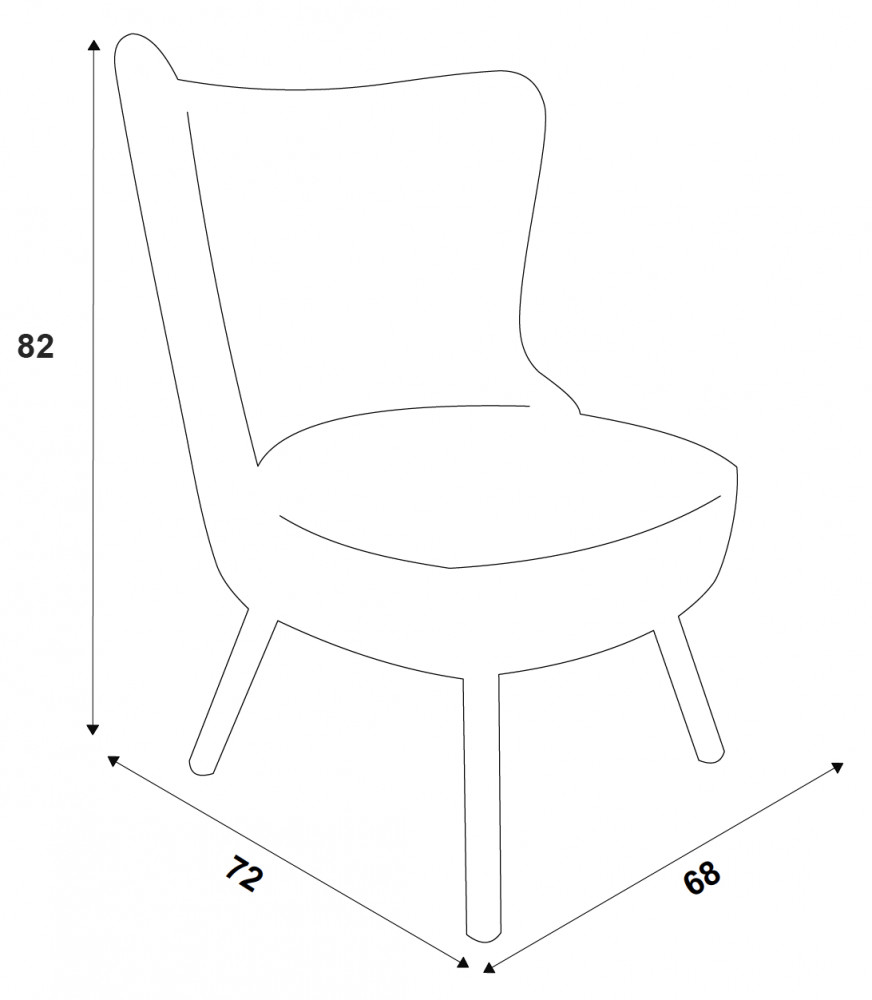 Nojatuoin mitat: lev. 68 syv. 72 ja kork. 82 cm