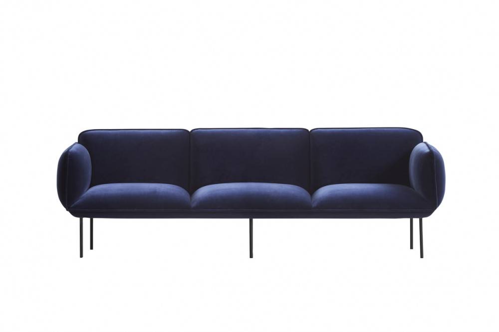 WOUD NAKKI sohvassa muhkeat pehmusteet takaa mukavan istuinmukavuuden. Neliömäinen muoto ja sirot metalliset jalat luo kontrastin sen pehmeille muodoille istuinosassa.