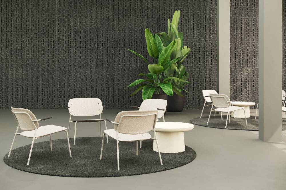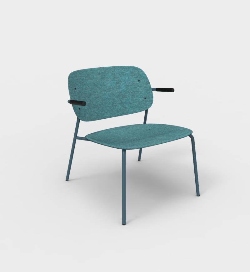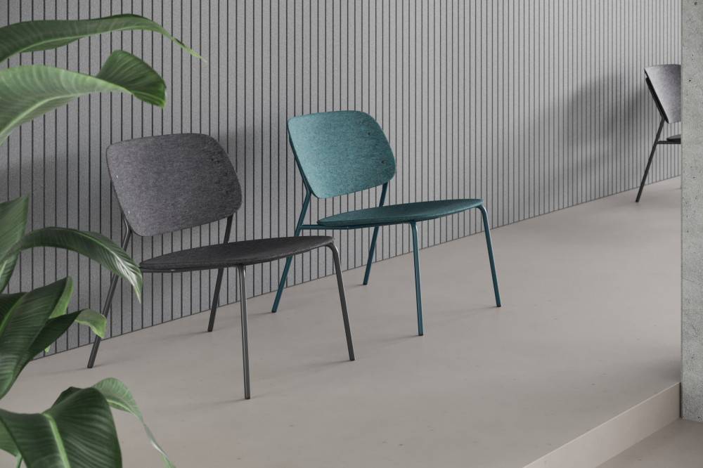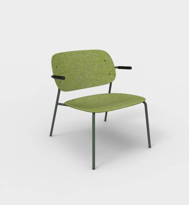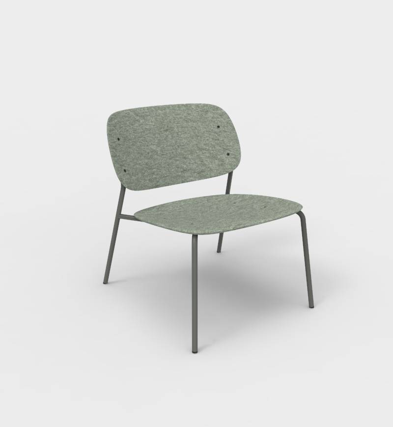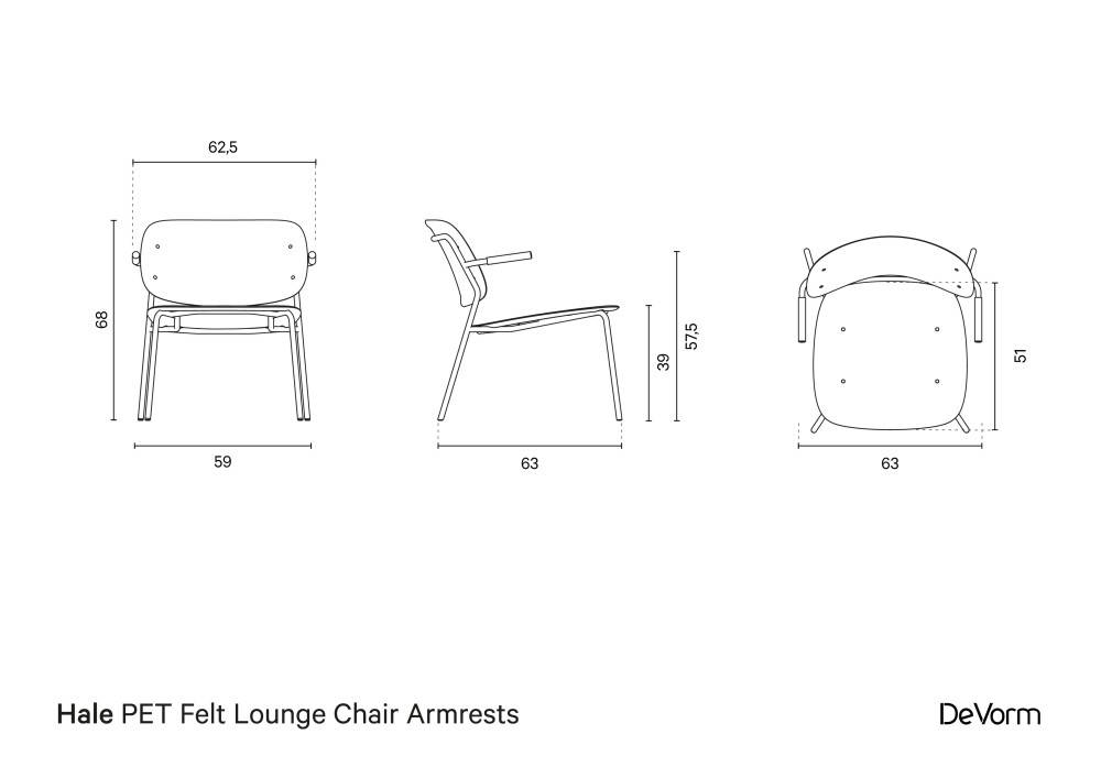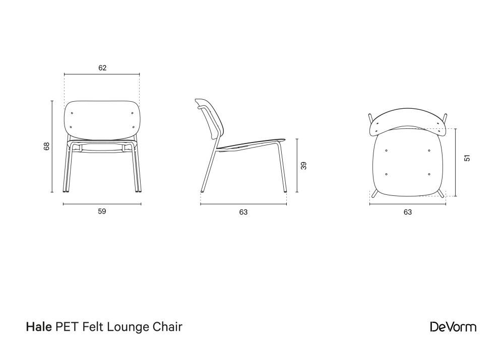 DEVORM HALE lounge tuolin muotoilu on saanut inspiraationsa klassisesta koulutuolista. Tuolin istuin ja selkänoja on valmistettu PET-huovasta ja runko kestävästä teräksestä. PET-huopa on pehmeä materiaali, joka on valmistettu täysin kierrätetyistä muovipulloista.