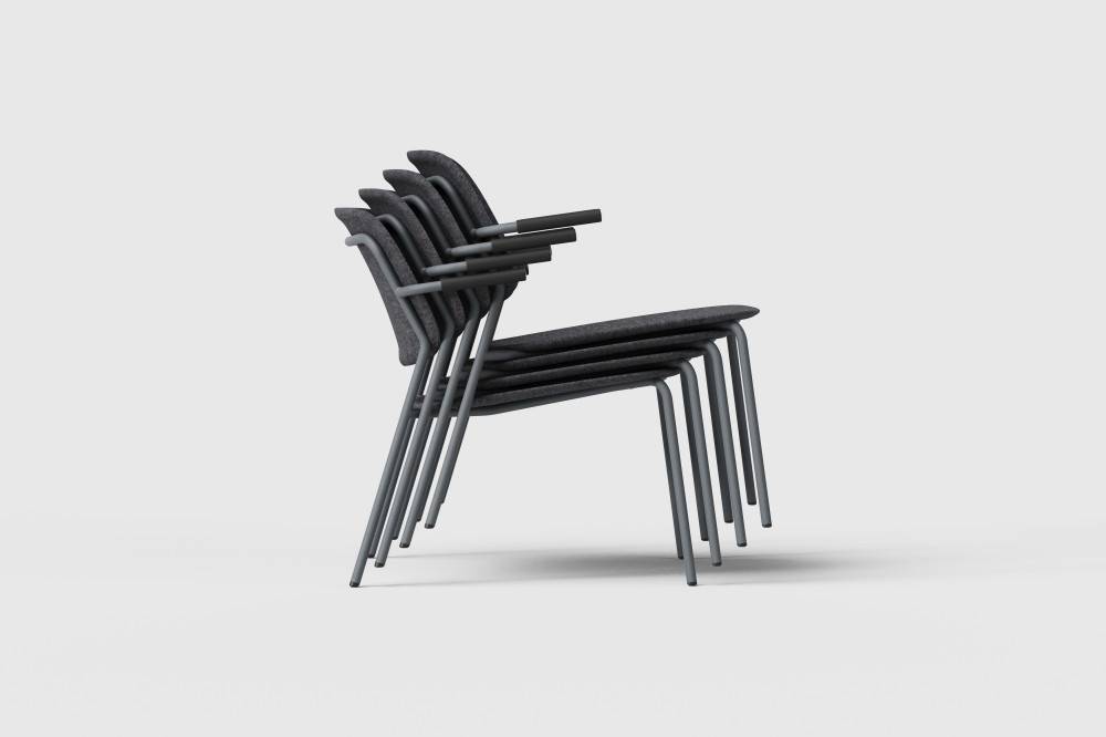 Istuin ja selkänoja ovat saatavilla 11 eri värisessä PET-huopasekoituksessa. Rungon standardi väreinä musta ja valkoinen, mutta voit valita minkä tahansa RAL-värin täydentämään ilmettä. HALE tuoli on saatavissa myös käsinojilla tai istuinverhoilulla. Tuoli on pinottava max 4 kpl.