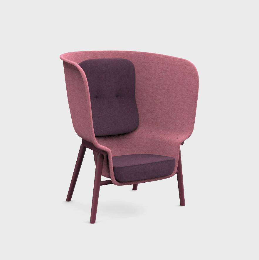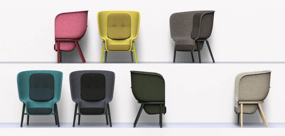 Istuinkuppi on saatavilla 11 eri värisessä PET-huopasekoituksessa. Massiivisaarnijalusta on vakiona luonnonvärinen tai musta, mutta voit myös valita minkä tahansa RAL-värin täydentämään ilmettä. Istuin- ja selkänojatyynyjen verhoiluun on paljon eri vaihtoehtoja.