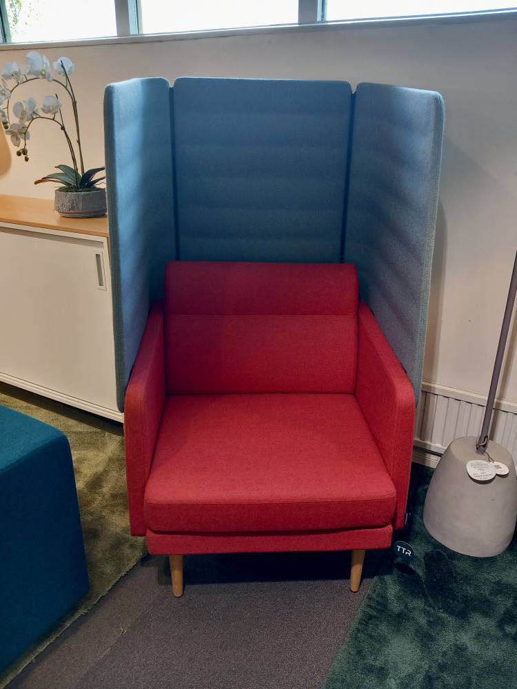 Myymälän mallikappaleena käytössä ollut nojatuoli nyt myynnissä poistohintaan.