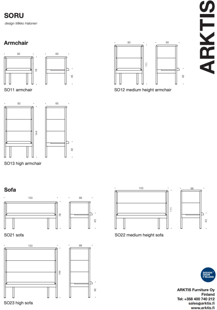 Soru-kokoelman pehmeät muodot ja kolmea eri korkeutta olevat selkänojat tarjoavat mahdollisuuden luoda houkuttelevia ja toiminnallisia tiloja auloihin, neuvotteluhuoneisiin ja muihin kohtaamispaikkoihin.
