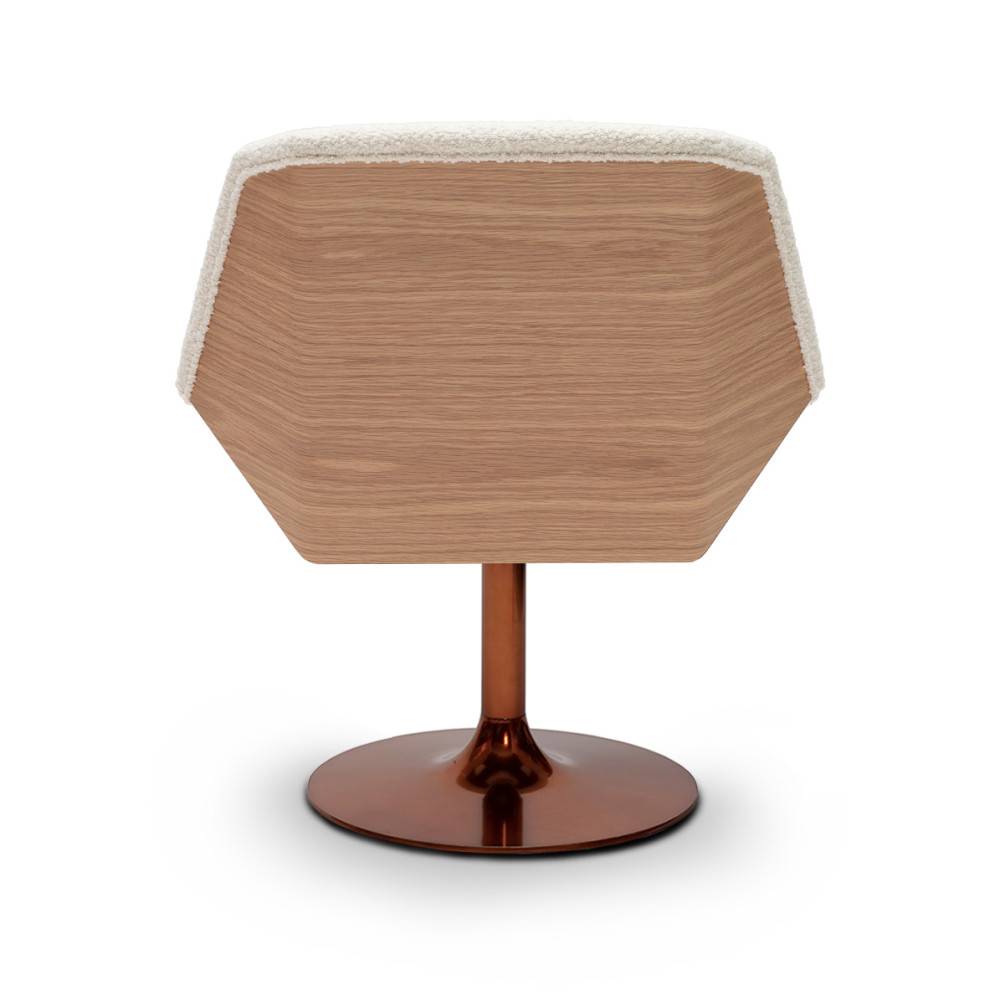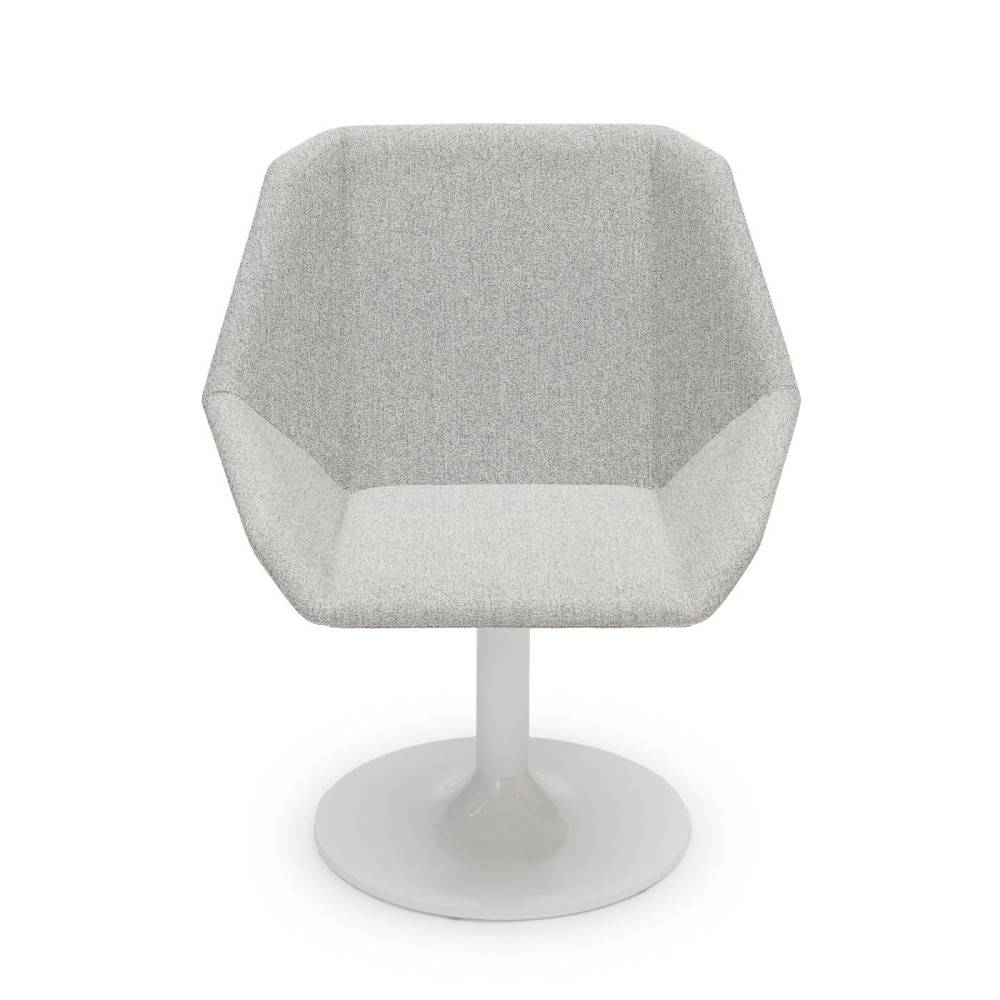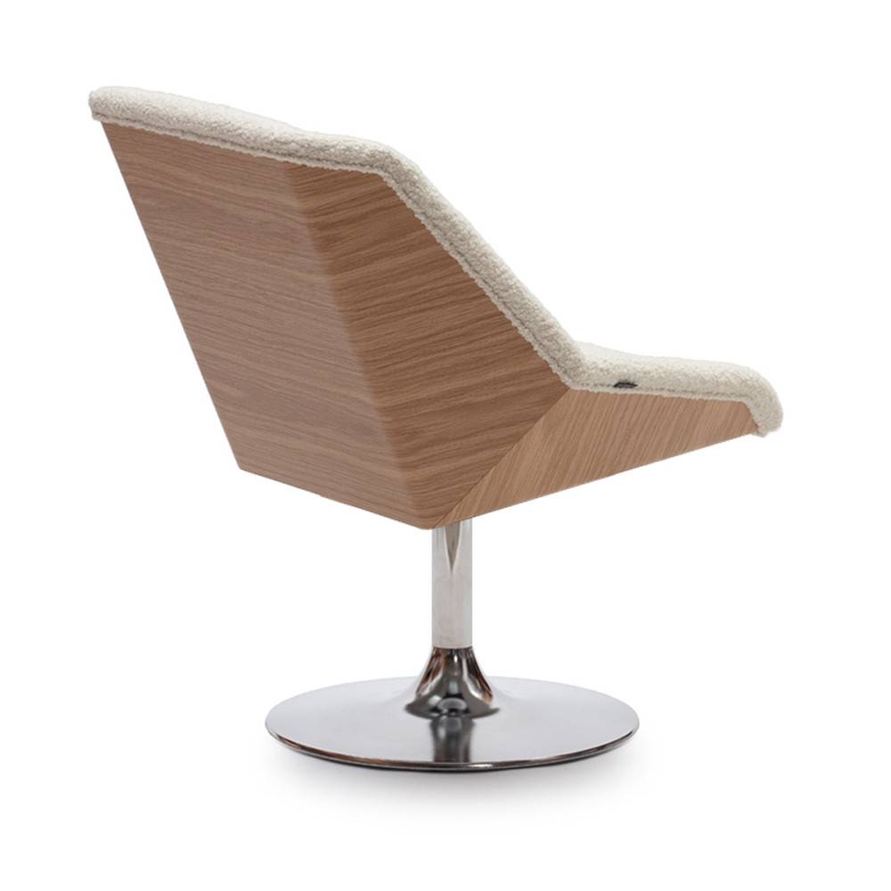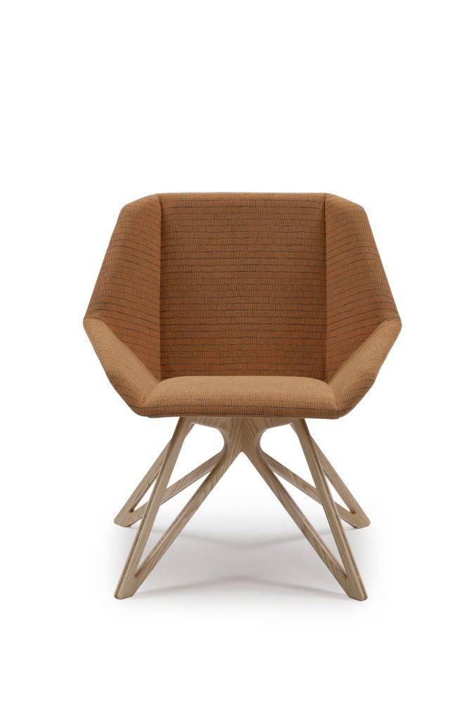 Muotokieli on pehmeä ja tasapainoinen. Istuimen kaarevuus mahdollistaa käsivarsien ja hartioiden luontevan lepuuttamisen, ja kaluste säilyttää ilmeensä eri katselusuunnista.