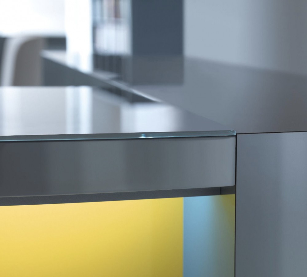 Etusarja: korkeakiiltoinen laminaatti, lasi ja alumiiniyksityiskohdat
