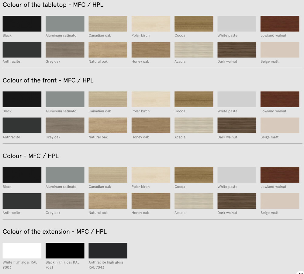 Etusarjat: kiiltävä HPL ja melamiini (valkoinen tai puunsävyinen)