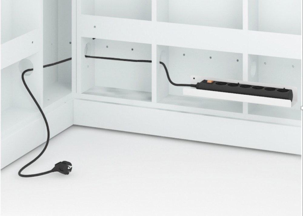 Vastaanottotiskin paneeliin kiinnitettävä johtokouru, sopii 80 cm leveälle pöydälle.