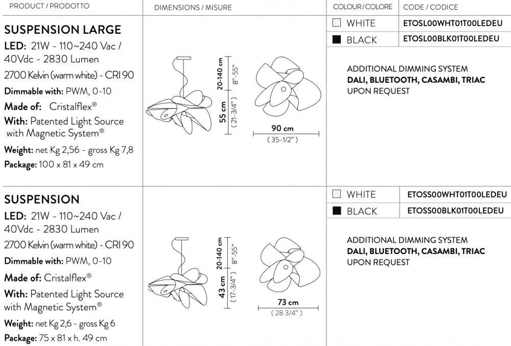 LED-lähde voidaan vaihtaa helposti ja nopeasti ainutlaatuisen magneettisen ripustusjärjestelmän ansiosta. Tästä modernista lampusta on saatavana kaksi ripustuskokoa ja se on saatavana mustana, valkoisena tai hopeisena. Kaikki versiot ovat monipuolisia valaistusratkaisuja, jotka tarjoavat minimaalisen ja lumoavan estetiikan.