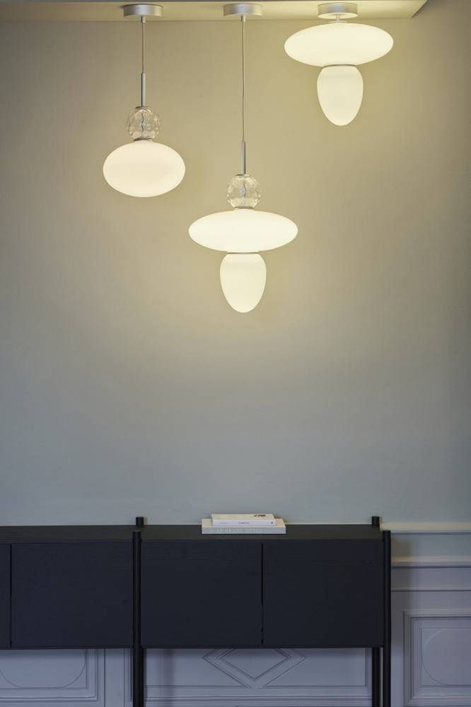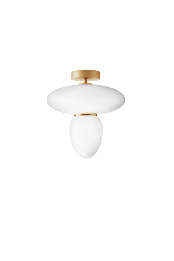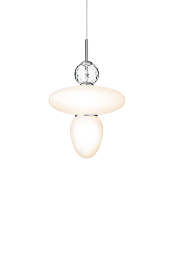 Värivaihtoehdot: runko messinki tai hopea, lasikupu opaalilasi.