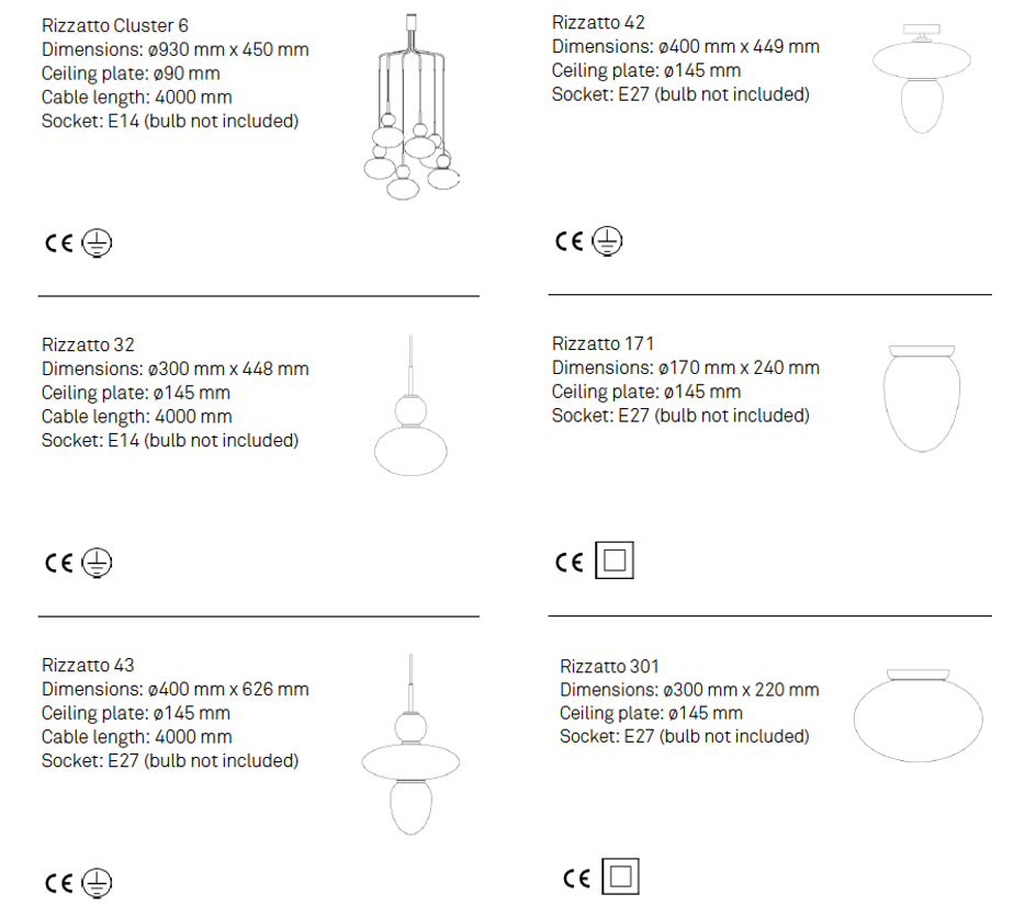 Nuura Rizzatto valaisinta on saatavilla kuutta eri mallia.