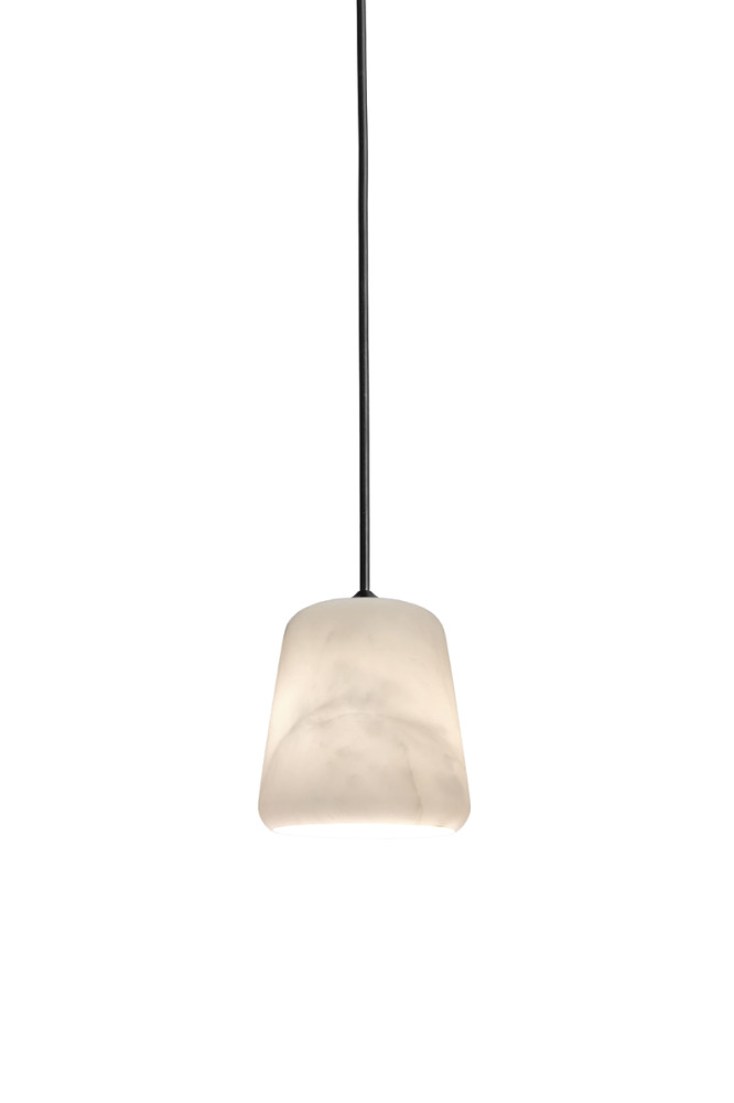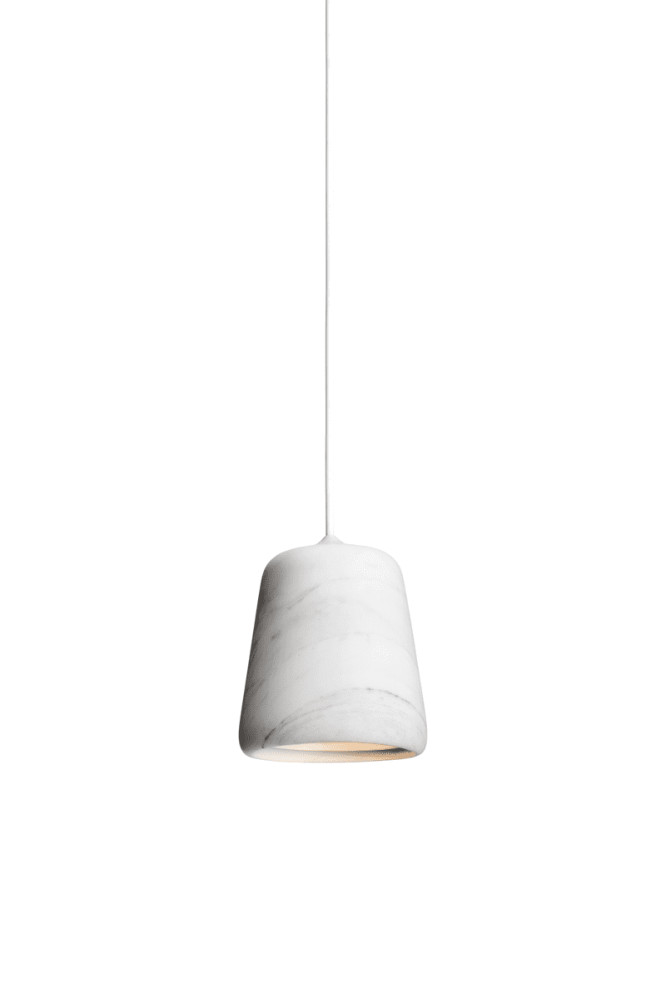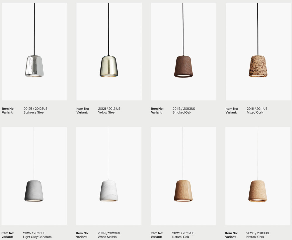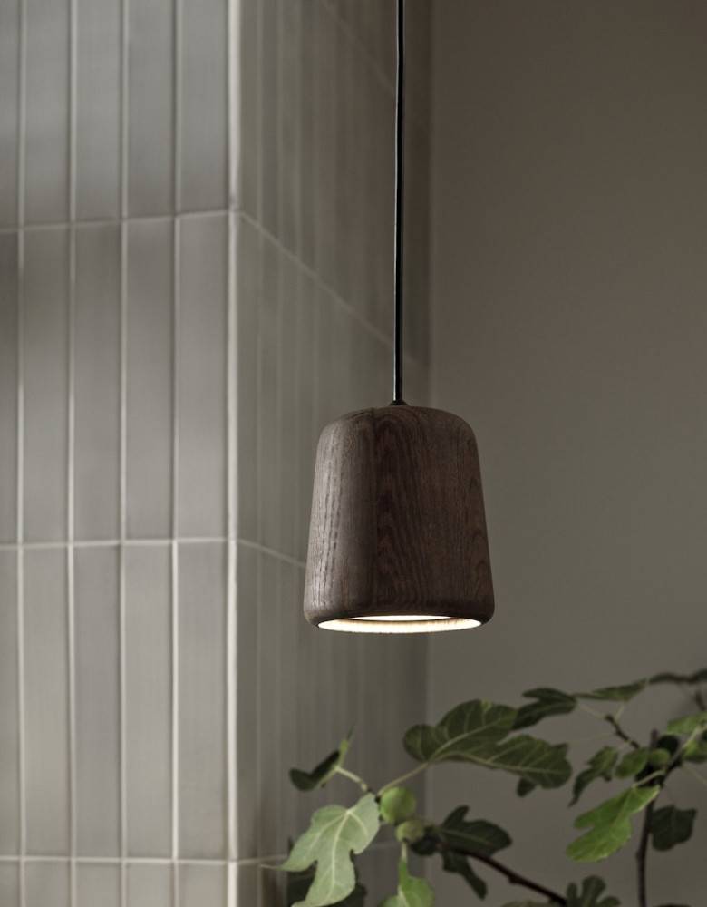 Material Pendant -riippuvalaisin korostaa yksinkertaisen muotokielen voimaa. Sen selkeä ja ajaton muotoilu mahdollistaa käytön joko näyttävänä sisustuselementtinä tai harmonisena osana muuta kokonaisuutta. Valaisimen persoonallisuus syntyy erilaisista materiaalivaihtoehdoista, jotka vaihtelevat lämpimästä tammesta ja korkista rouheaan betoniin ja marmoriin, terrakotan vivahteisiin ja kirkkaaseen keltaiseen teräkseen.