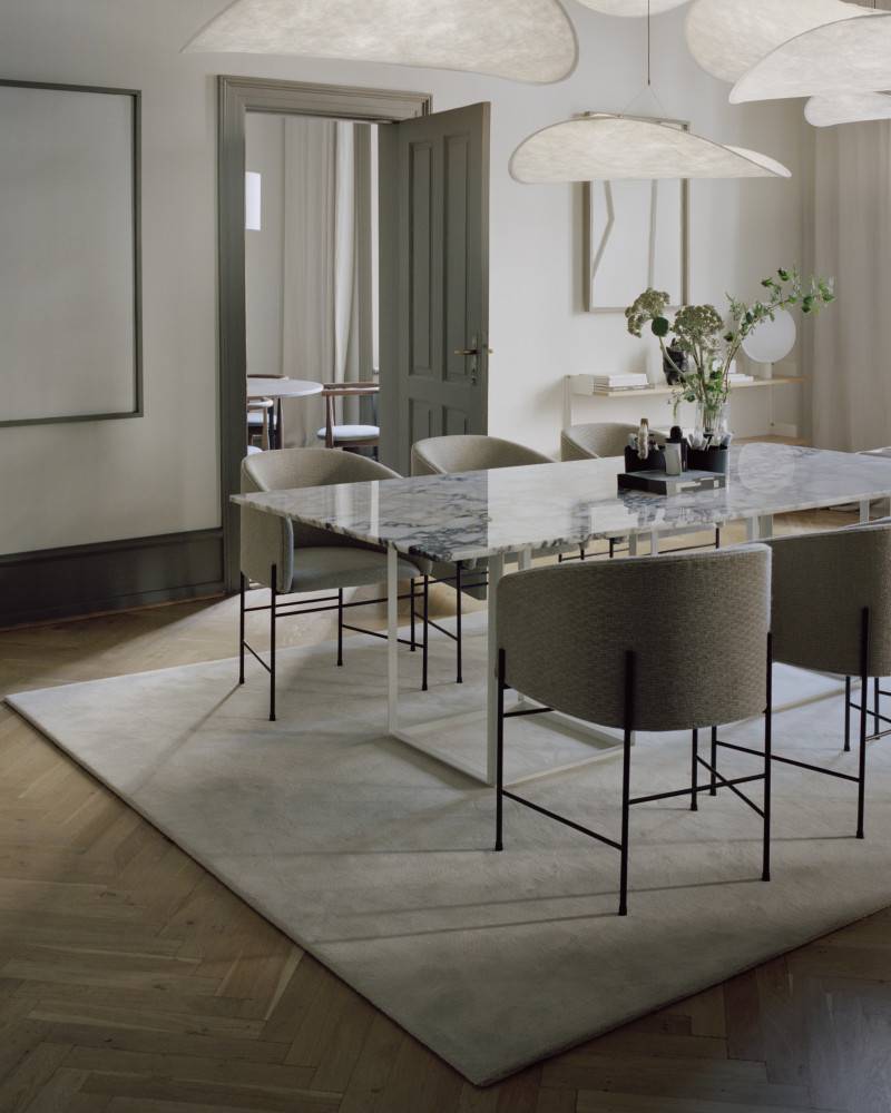 Valaisimien diffuusorit on valmistettu Tyvek®-materiaalista, joka on kestävä, kevyt ja 100 % kierrätettävä. Paperimaisen joustava pinta jakaa valon pehmeästi ja luo tilaan rauhallisen, ilmavan tunnelman. Rakenteessa käytetty hiilikuituinen kehikko kiristää kankaan muotoon, ja magneettikiinnitys tekee asennuksesta helppoa.