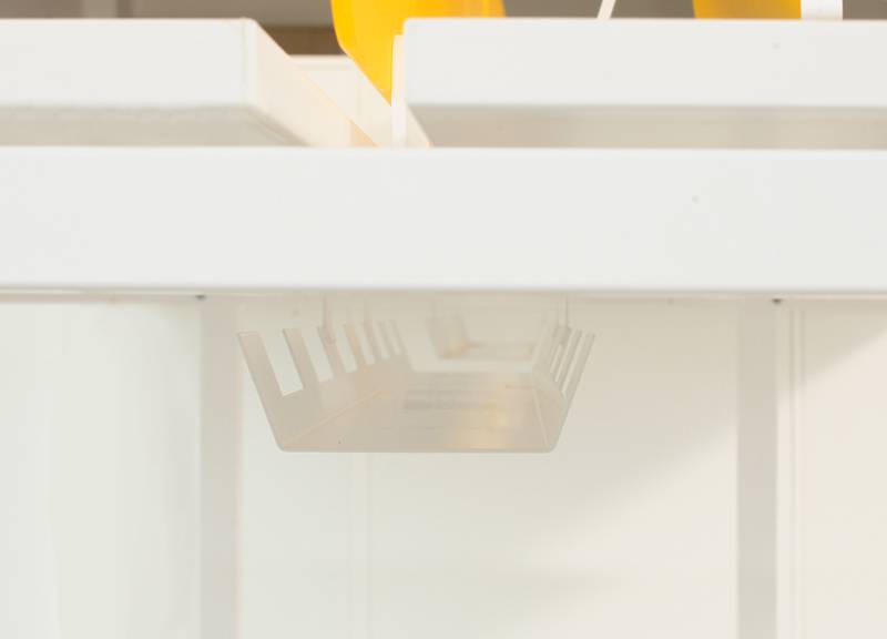 Pöytään on saatavana myös metalliset johtoluukut ja -kourut, joihin värin voi valita.