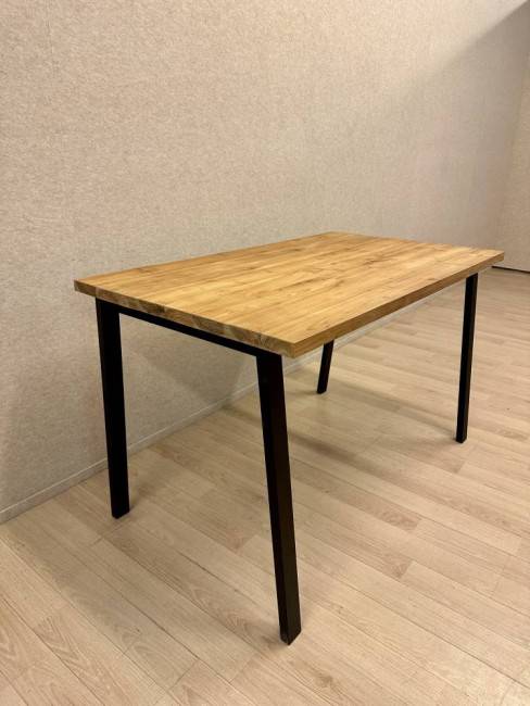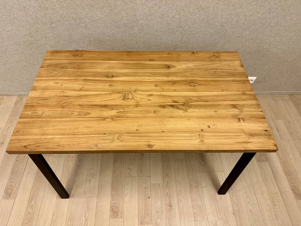 Ajaton ja monikäyttöinen pöytä, jossa tukeva jalusta mustaksi jauhemaalattua metallia. Pöydän kansi on valmistettu laadukkaasta massiivipuusta, joka tuo luonnollista lämpöä ja kestävyyttä.