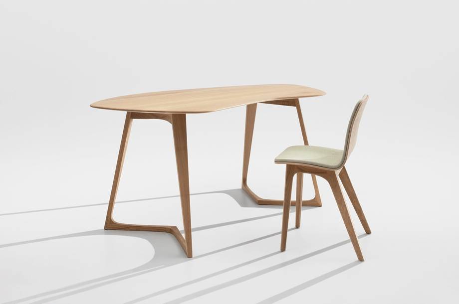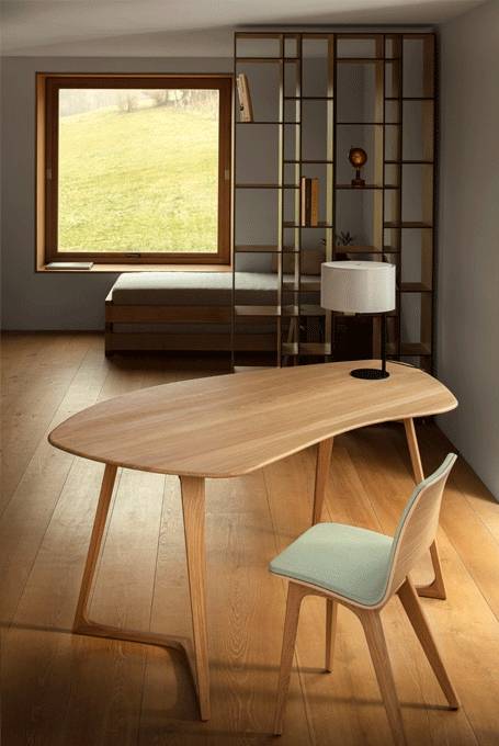 TWIST OFFICE on massiivipuinen työpöytä, jonka vapaamuotoinen pöytälevy on suunniteltu tukemaan ergonomista työskentelyä. Muoto poikkeaa perinteisestä suorakaiteesta ja tarjoaa käyttäjälle luonnollisen työskentelyasennon.