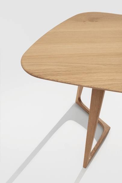 Pöytä on valmistettu massiivipuusta. Kevyt runkorakenne yhdistää rakenteellisen kestävyyden ja muotoilun, ja pöytälevyn profiloitu reuna viimeistelee kokonaisuuden.