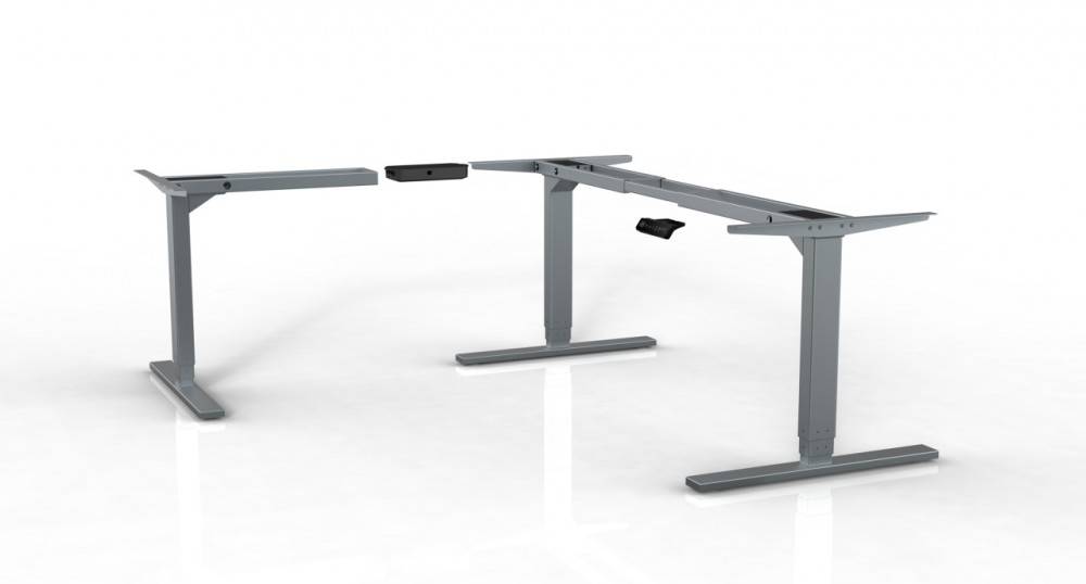 Harmaat (RAL7045), valkoiset (RAL9016) tai mustat (RAL9005) sähköjalat, joissa kaikissa jaloissa omat moottorit. Pöytälevy matalapainelaminaattia, värinä valkoinen (M1 White) tai vaalea tammilaminaatti (D1 Whitened Oak), ABS reunalista kannen sävyyn, pöytälevyn paksuus 25 mm. Pöytä koostuu kulmapöytälevystä + sivupalasta.