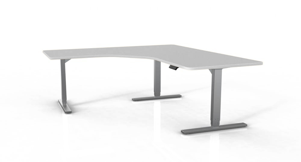 Harmaat (RAL7045), valkoiset (RAL9016) tai mustat (RAL9005) sähköjalat, joissa kaikissa jaloissa omat moottorit. Pöytälevy matalapainelaminaattia, useita eri värivaihtoehtoja. ABS reunalista kannen sävyyn, pöytälevyn paksuus 25 mm. Pöytä koostuu kulmapöytälevystä + sivupalasta.