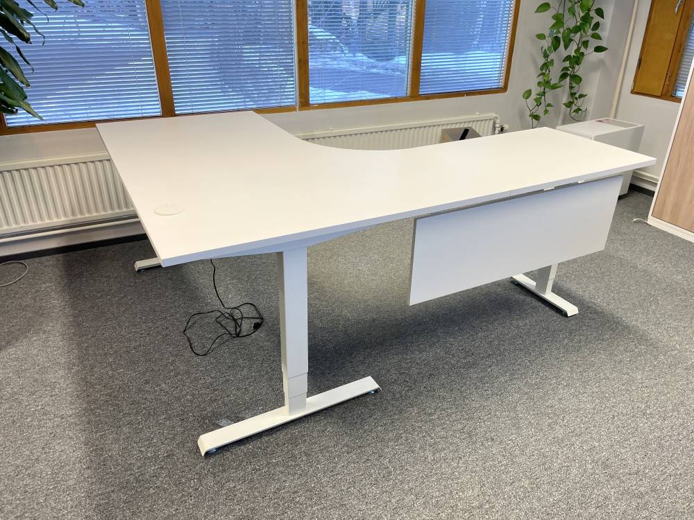 Siistikuntoinen kulmasähköpöytä.