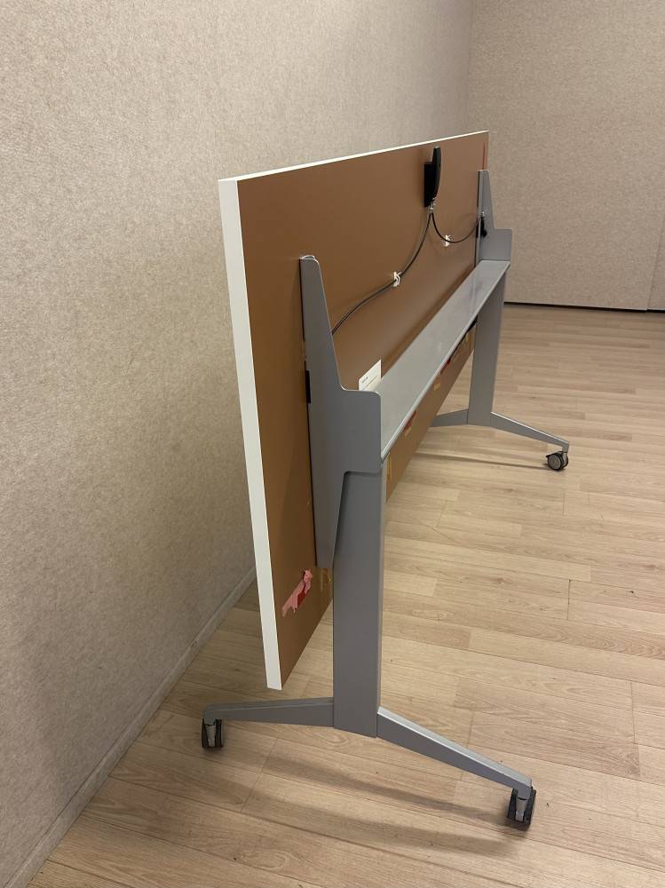 Pyörillä varustettu taittojalkapöytä, joka soveltuu hyvin esimerkiksi neuvottelu-, koulutus- tai taukotiloihin. Pöytä on helposti siirreltävissä, kahdessa pyörässä on jarrut, jotka tuovat lisävakautta käyttöön. Pöytä taittuu kokoon ja vie vain vähän tilaa säilytyksessä. Useita pöytiä voi säilyttää lomittain peräkkäin, jolloin ne mahtuvat erittäin kompaktisti pienempään tilaan.
