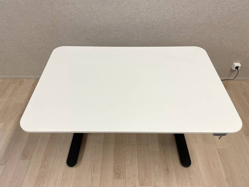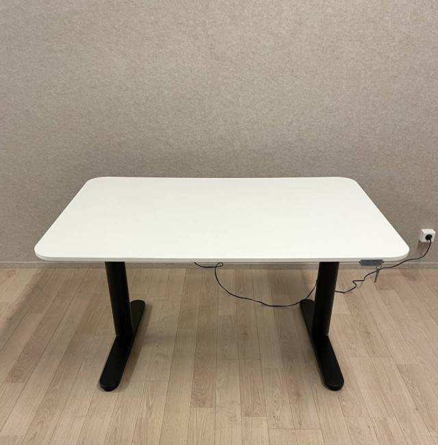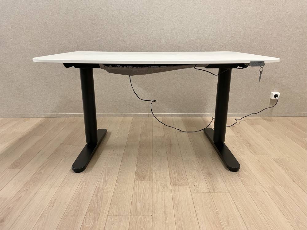 Ikea sähköpöytä.Musta jalusta, valkoinen kansi.Säätöalue 65-125 cm.