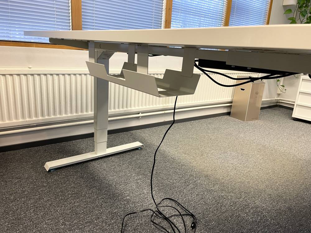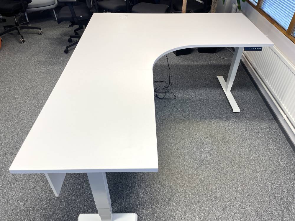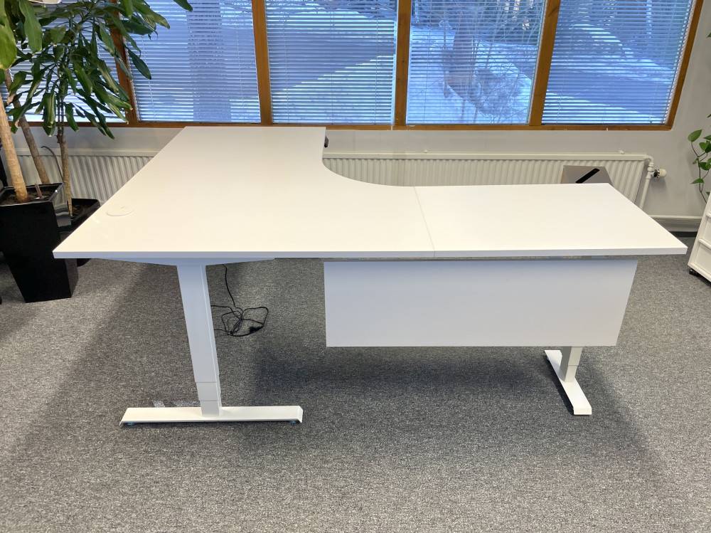 Siistikuntoinen kulmasähköpöytä.