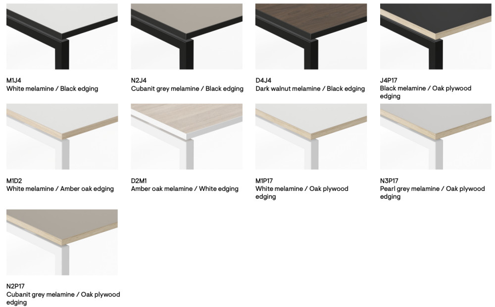 Pöytälevy on 2,5 cm paksua matalapainelaminaattia tai viilua. Laminaattikannessa ABS reunalista ja viilukannessa 2 mm viilureunalista. Pöytä on saatavana useassa eri värissä. Halutessa ABS reunalistan saa eri värillä kuin pöydän!