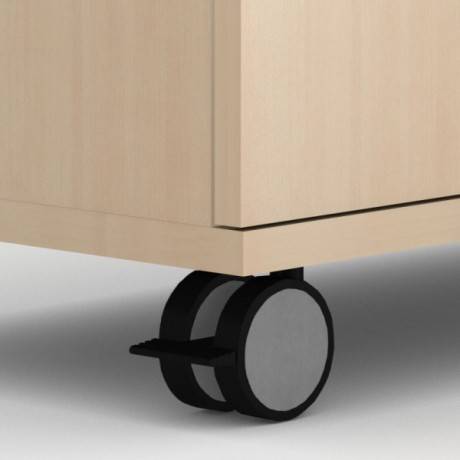 Muovitassujen tilalle voi tilata pyörät, joista kaksi on lukittavia. Pyörällisen sokkelin korkeus on 9 cm. Tällöin kaapin kokonaiskorkeus nousee n. 7 cm.
