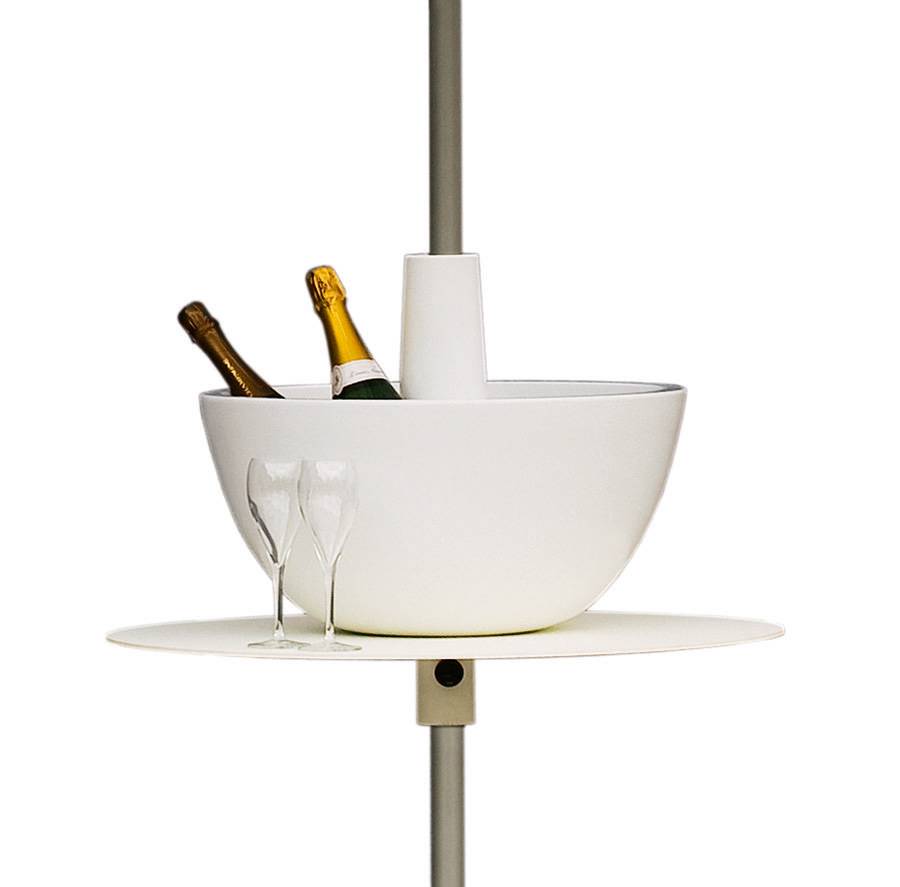 Pyöreä pöytä aurinkovarjoon, halk. 70 cm. Saatavana mustana (RAL 9005) tai valkoisena (RAL 9010). Pulverimaalattu, 5 mm alumiinia. Paino 5 kg. Malja polyeteeniä, halk. 50 cm.