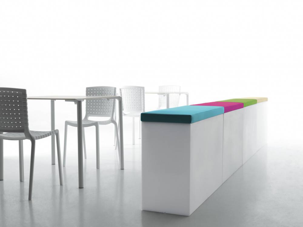 Istuinpehmuste PREDALI KADO-sarjan ruukkujen päälle. Pehmusteet muuttavat ruukut käteviksi istuimiksi.