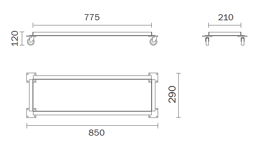 Galvanisoidusta teräksestä valmistettu kuljetuskärry KADO-sarjan ruukuille. Kärry on säänkestävä.