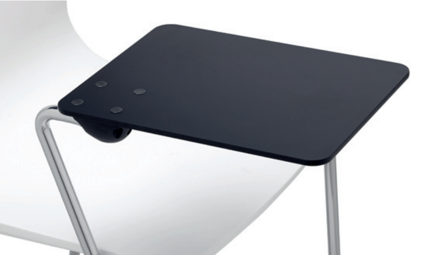 Luentopöytä ALICE asiakas-/neuvottelutuoliin. Musta, kääntyvä, kromattu runko. Sopii käsinojattomaan ALICE tuoliin.