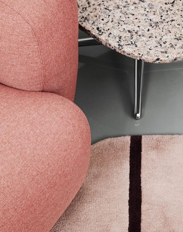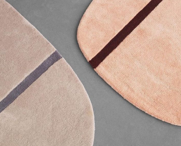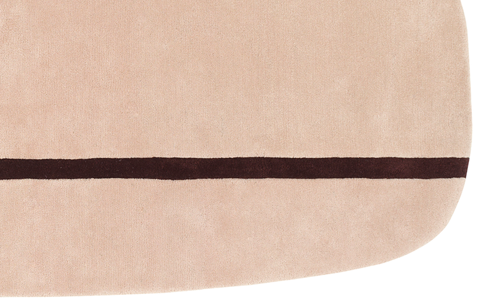 Normann Copenhagen Oona matossa puhtaat linjat ja pehmeät kaaret kohtaavat toisensa ja luovat kolme ainutlaatuista muotoa, jotka eivät ole pyöreitä eivätkä neliömäisiä. Matossa olevan kontrastiviivan nukka on 3 mm lyhyempi. Matto on käsintehty ja 100% villaa.