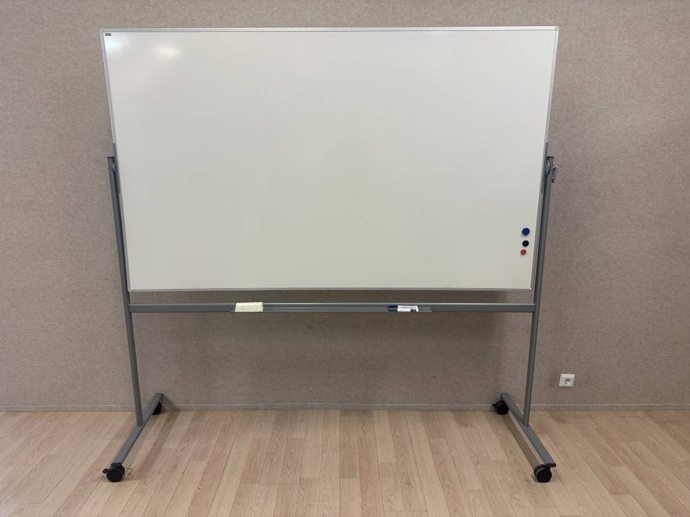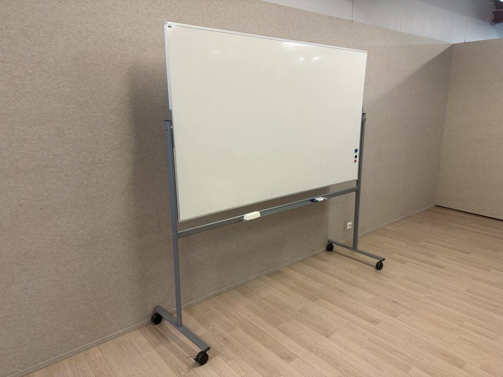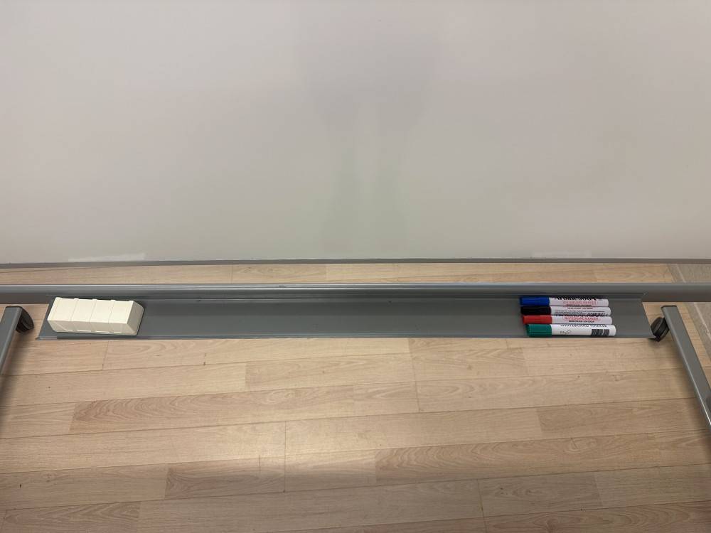 Siistikuntoinen tussitaulu pyörillä. Taulu on 2-puoleinen, käännettävissä ympäri, kynäkaukalo.Mitat: