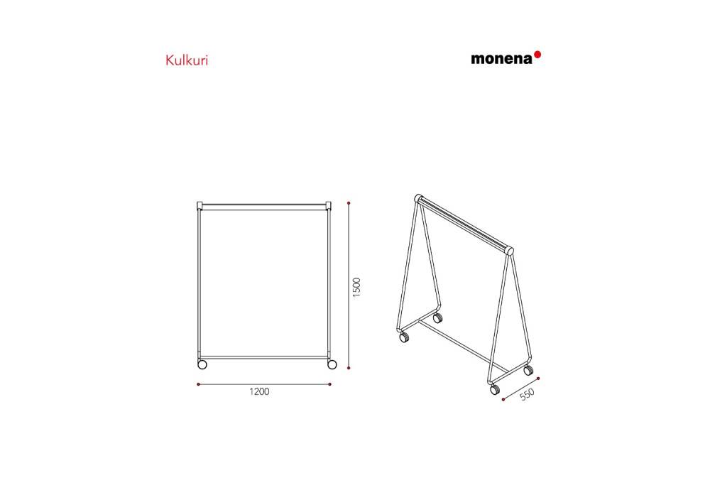 Monena Kulkuri on siirtonaulakko julkisiin ja puolijulkisiin tiloihin, joissa tarvitaan helposti liikuteltava mutta rakenteeltaan vakaa ratkaisu vaatteiden ripustamiseen. Naulakossa yhdistyvät metallirunko ja puuosat, mikä tekee kokonaisuudesta sekä kestävän että tilaan sopivan. Kulkuri soveltuu käytettäväksi esimerkiksi auloissa, toimistoissa ja tapahtumatiloissa.
