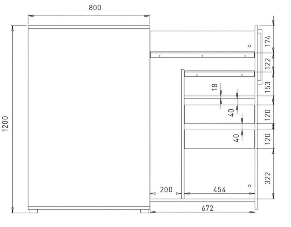 BOXI apteekkarinkaappi sijoitetaan pöydän päätyyn, jolloin se toimii myös tilanjakajana.