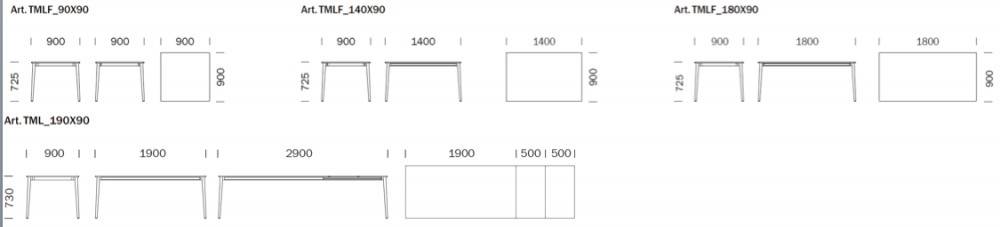 Koko 190x90 cm --> jatkettava 290x90 cm