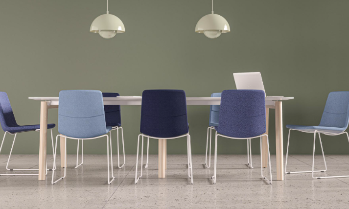 Pöytää saa myös matalapainelaminaattilevyllä. Matalapainelaminaatti riittää toimistokäyttöön. Sopii hyvin käytettäväksi esim. neuvottelu- ja aulapöydissä.