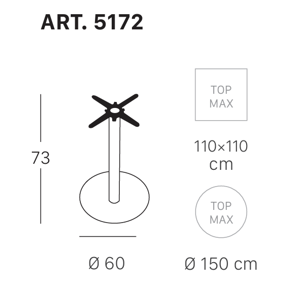 Pöytärunkoa saatavana ainoastaan mustalla pyöreällä laipalla. Laipan halk. 60 cm. Pöytälevyn max. koot halk. 150 cm ja 110x110 cm.