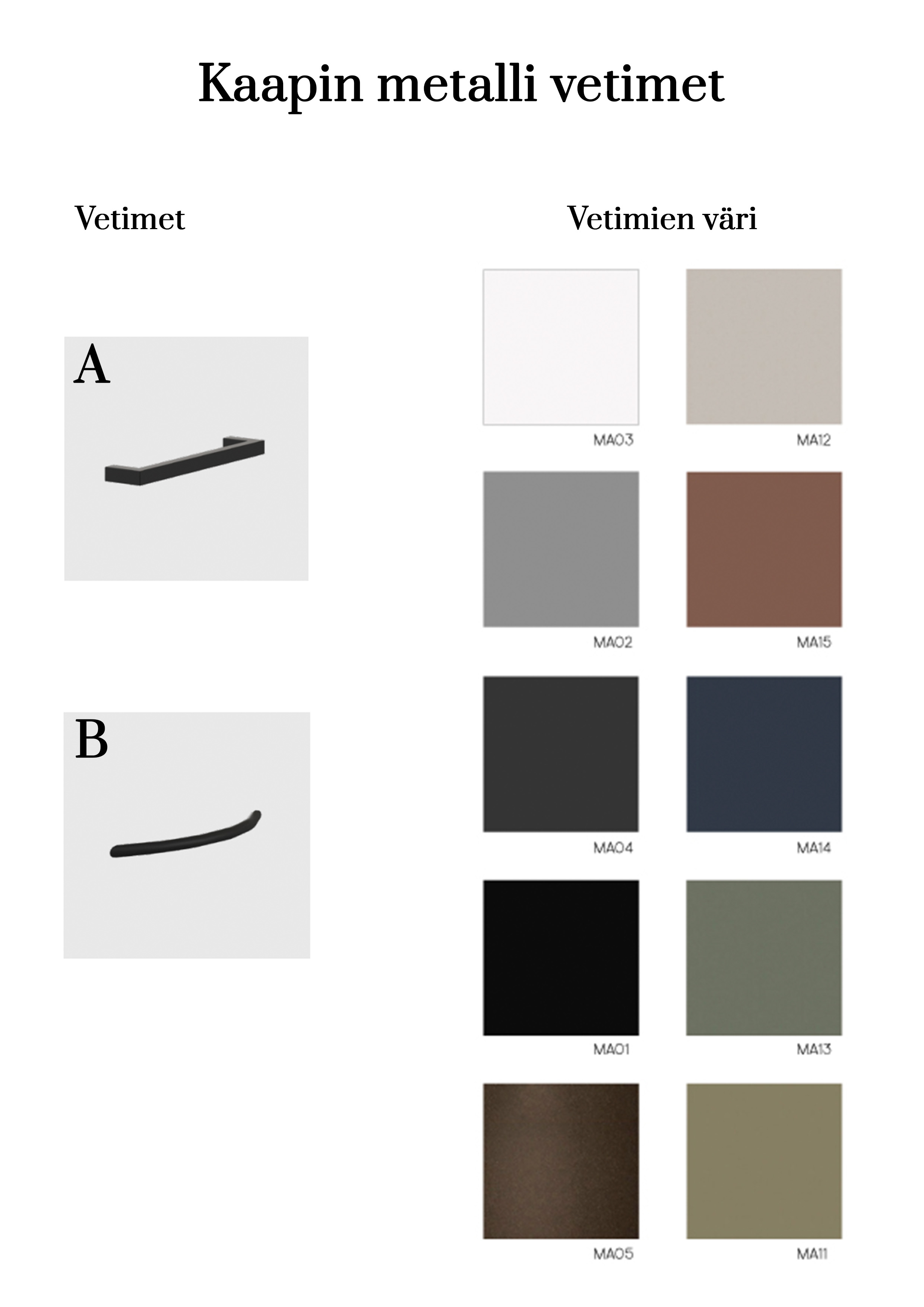 - Metallijalat + 8 cm. Metalliväri valittavissa.