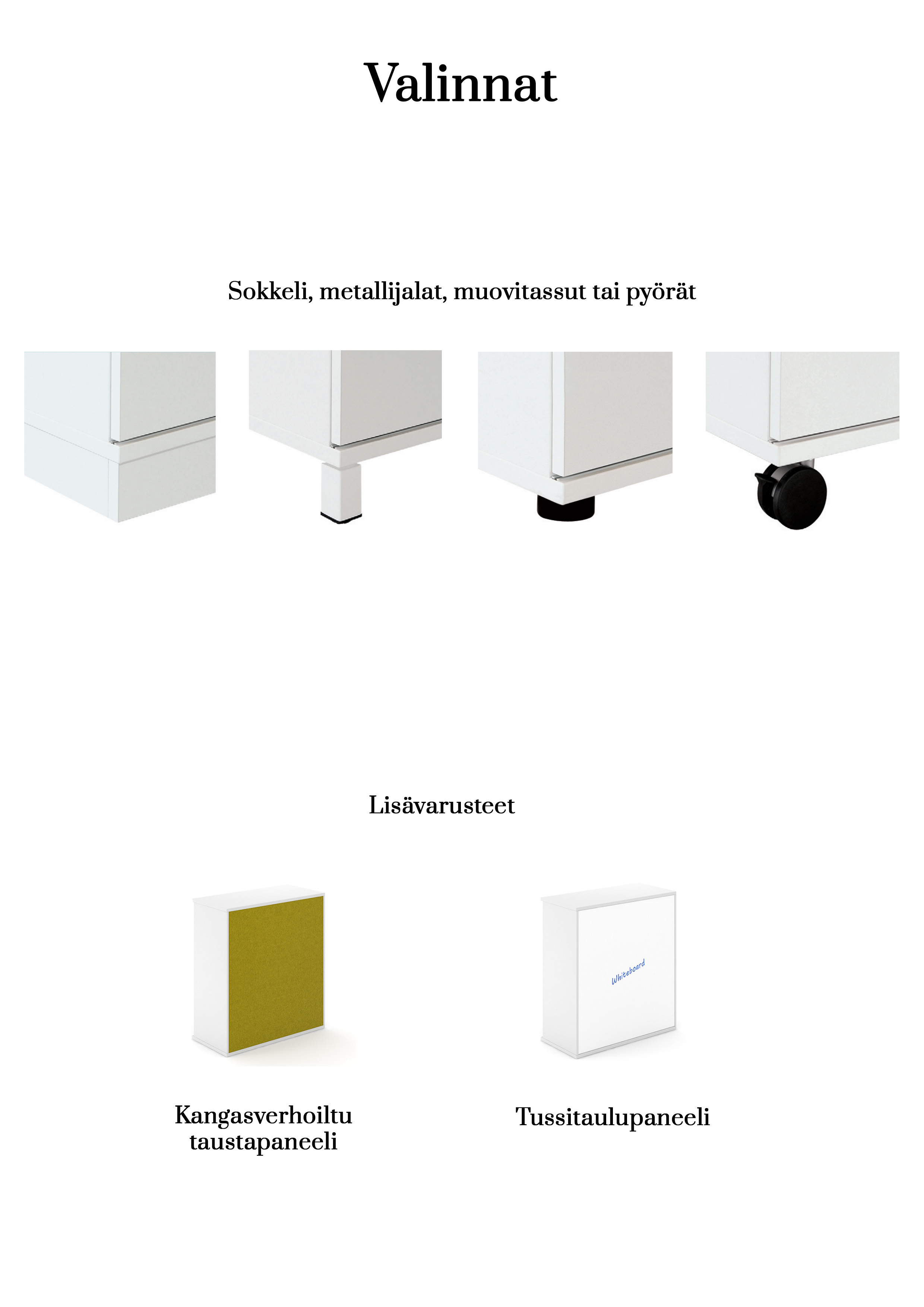 - Umpisokkeli + 8 cm. Matalapainelaminaatin väri valittavissa.
