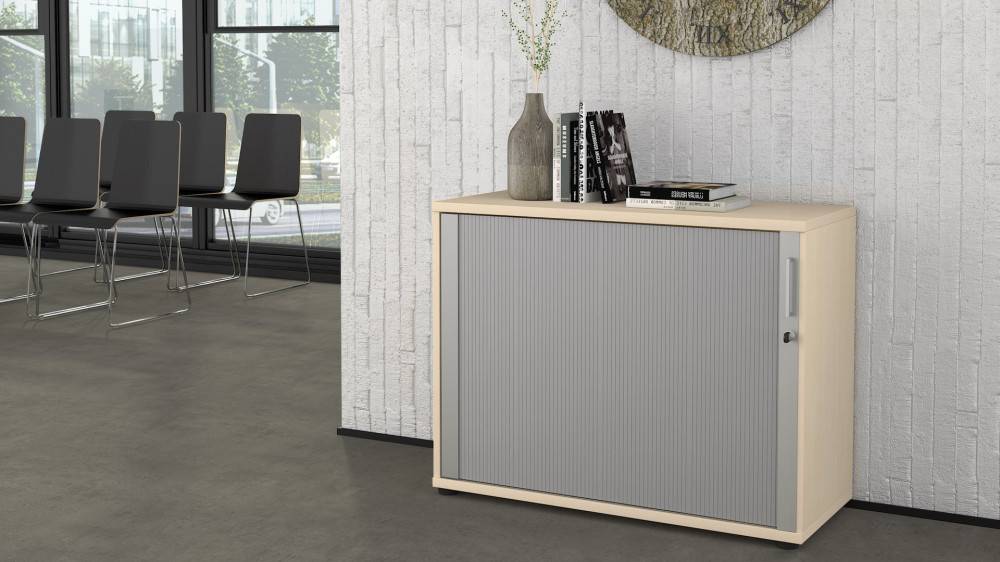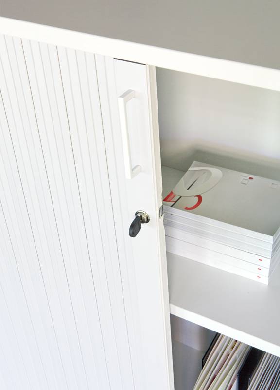 NARBUTAS UNI kalustesarja tarjoaa edullisen ja tyylikkään ratkaisun nykyajan moderniin toimistoon. UNI sivurulokaapin runko on helppohoitoista ja huoletonta matalapainelaminaattia, rulo-ovi polypropeenia. UNI sivurulokaappi on tilaustuote ja sitä on saatavissa usealla eri värillä. Kaappi on lukittava ja mukana tulee 2 avainta.