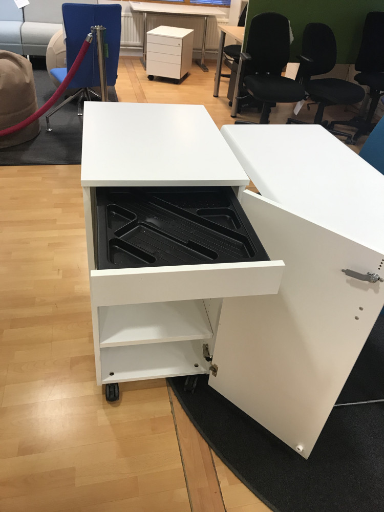 Siistikuntoisia säilyttimiä pyörillä.