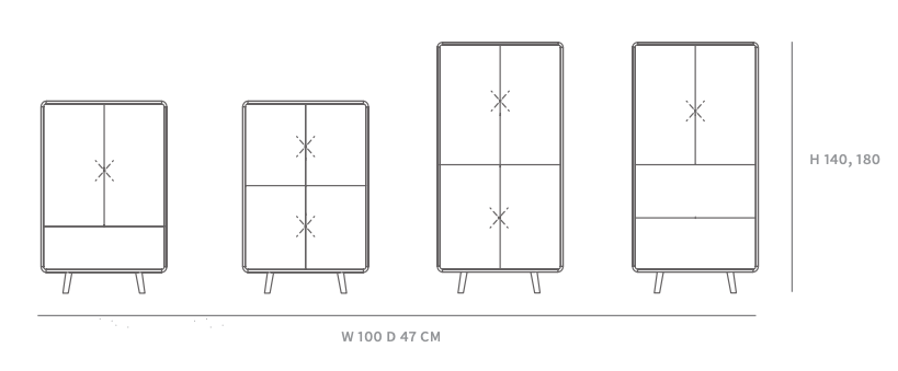 Neva highboard on saatavana eri korkeuksissa ja ovien tai laatikoiden määrillä, jolloin se mukautuu erilaisiin säilytystarpeisiin. Sen ajaton muotoilu sopii saumattomasti niin moderneihin kuin klassisiin sisustuksiin, tuoden tilaan lämpöä ja hienostunutta rytmiä.