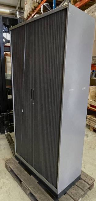 Käytännöllinen ja kestävä metallinen säilytyskaappi, joka sopii erinomaisesti toimistoon, varastoon tai arkistointikäyttöön. Kaapissa on tilaa säästävät muoviset rulo-ovet, jotka liukuvat sivuille eivätkä vie tilaa avattaessa.