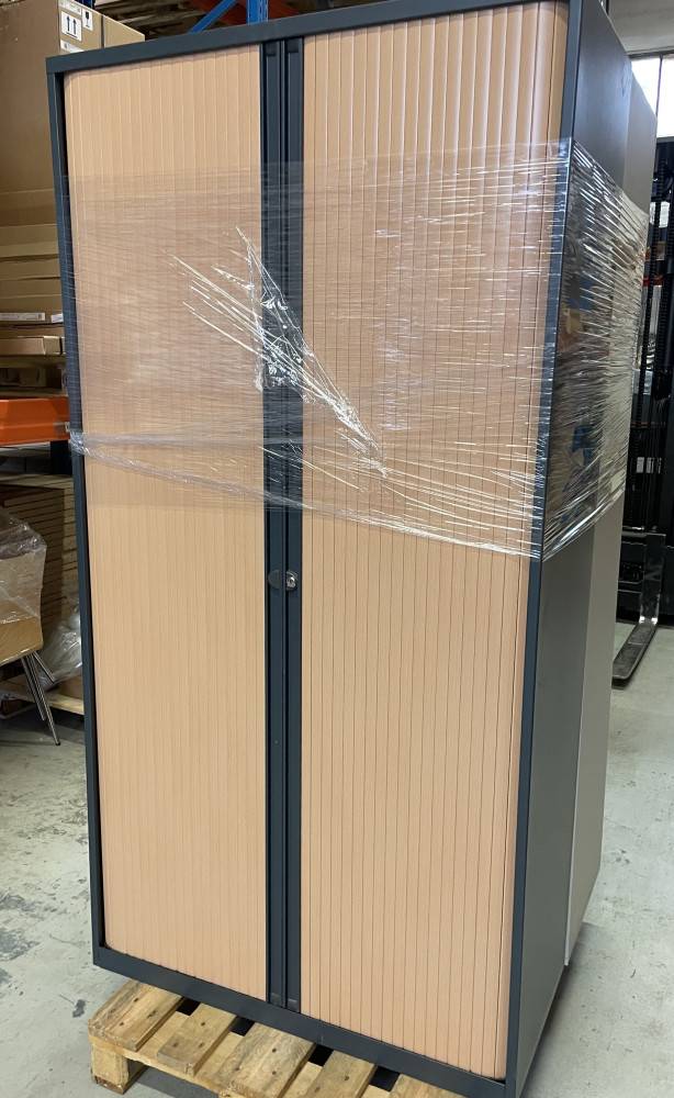 Käytännöllinen ja kestävä metallinen säilytyskaappi, joka sopii erinomaisesti toimistoon, varastoon tai arkistointikäyttöön. Kaapissa on tilaa säästävät muoviset rulo-ovet, jotka liukuvat sivuille eivätkä vie tilaa avattaessa.
