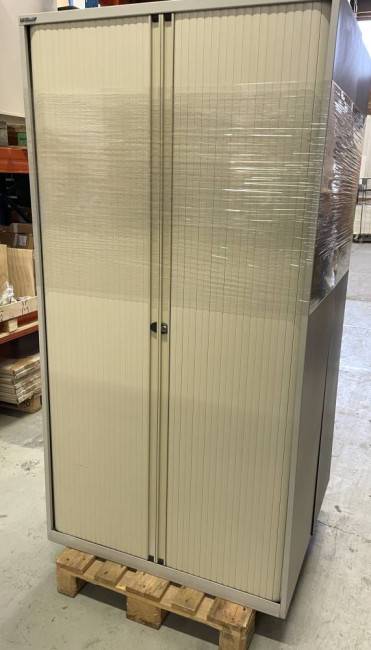 Käytännöllinen ja kestävä metallinen säilytyskaappi, joka sopii erinomaisesti toimistoon, varastoon tai arkistointikäyttöön. Kaapissa on tilaa säästävät muoviset rulo-ovet, jotka liukuvat sivuille eivätkä vie tilaa avattaessa.