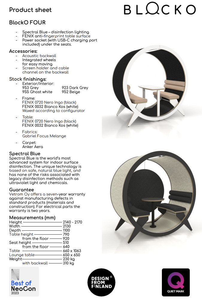 - BlockO Quiet Four k. 2140-2170 mm, l. 2130 mm, s. 1145 mm